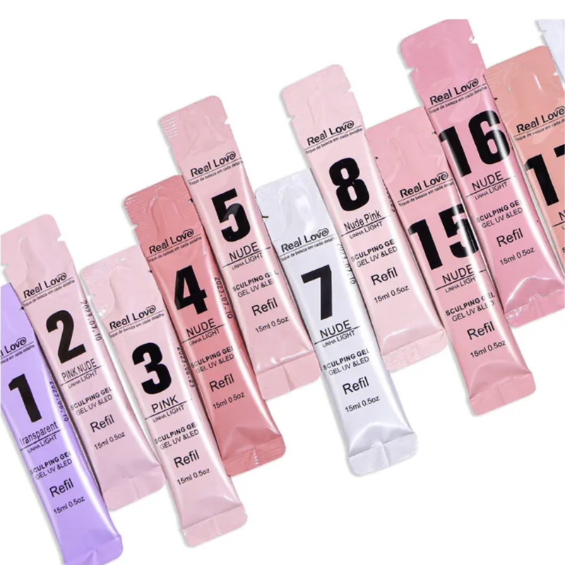1- Refil para Gel de Alongamento - Linha Light - Real Love, 15ml.