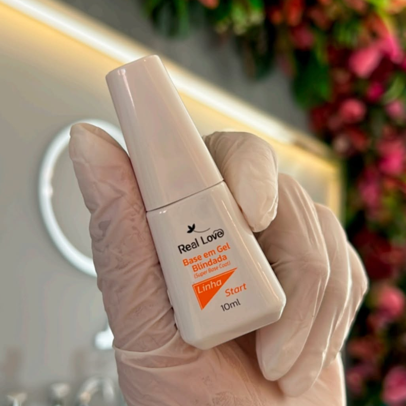 Descrição Mercado Livre:Produto profissional para preparo das unhas que cria uma camada protetora e de alta aderência, “blindando” a unha natural para alongamentos e esmaltação em gel. A Gel Base Blindada Real Love Linha Start (10ml) aumenta a durabilidade, reduz descolamentos e entrega acabamento liso e brilhante.