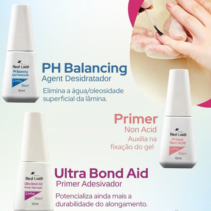 Primer adesivador sem ácido que prepara a unha natural para alongamentos e esmaltação em gel, aumentando a aderência e evitando descolamentos. O Ultra Bond Aid Real Love Linha Start (10 ml) atua como uma “fita dupla face”, removendo umidade/oleosidade da superfície para uma fixação firme e duradoura.