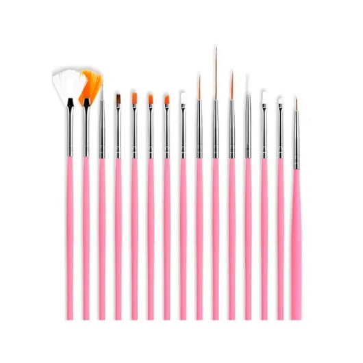 Kit com 15 pincéis para decoração de unha, com 15 pontas diferentes.