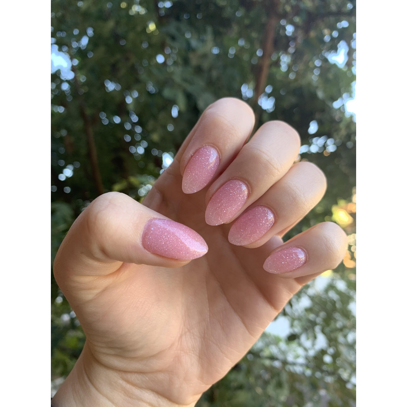 Aplique o Gel Construtor Glitter Dafu sobre a unha natural ou tip.