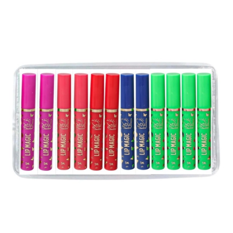 O Batom Líquido Lip Magic da Soul Cosméticos é uma escolha versátil e inovadora para realçar os lábios. Disponível em embalagens coloridas nas tonalidades vermelho, azul, rosa, roxo e verde, esse batom ajusta a cor de forma mágica de acordo com o pH da boca, proporcionando um tom único e pessoal. Ideal para quem busca um produto divertido e personalizado para a maquiagem diária.