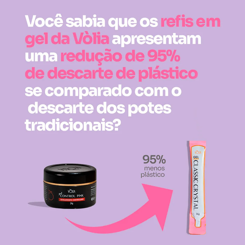 O seu Gel Vòlia agora chega na embalagem de refil, em um sachê exclusivo de 14g, que pote ser usado para encher os potes Vòlia. O gel Vòlia , versátil e auto-nivelante, formulado para oferecer resultados de maior resistência, adesão e força. Sua viscosidade média facilita a aplicação e garante um acabamento perfeito. Sua tonalidade possui uma coloração perfeita baseada nas misturinhas para babyboomer, além de ser ideal, dependendo da quantidade da aplicação, para efeitos de borda livre e . Possui em sua fórmula um agente catalisador que impede a unha de ficar amarelada, garantindo o branco ideal e perfeito para o efeito desejado. Pode ser usado na pré-curvatura e no ponto de tensão, em todos os tipos de alongamentos e procedimentos. Agora com secagem mais rápida, garante resultados ainda mais duradouros e resistentes.