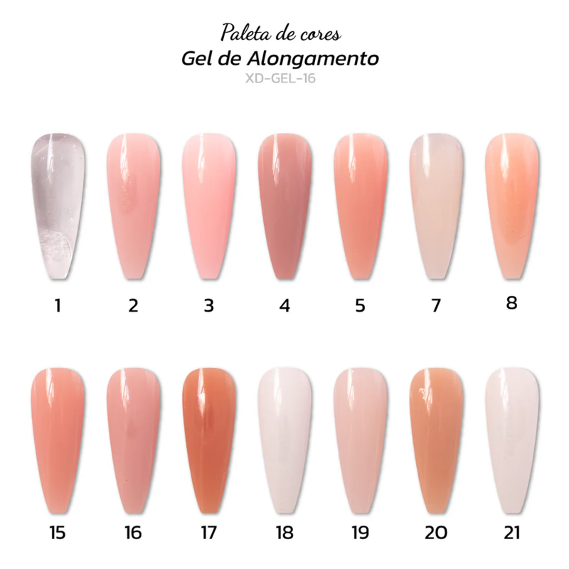 Gel de Alongamento para unhas! Perfeito para modelar e construir unhas em fibra ou qualquer unha artificial. Com cores que deixam o acabamento natural.