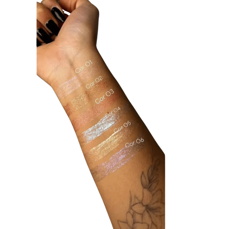 A sombra líquida Glow proporciona alto brilho holográfico. Sua fórmula de