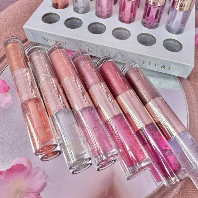 O Lip Gloss Duo Gloss Cristal Vivai é a combinação perfeita de brilho e hidratação, oferecendo dois efeitos em um único produto. Com sua fórmula inovadora, proporciona lábios deslumbrantes, com um brilho incrível e suave, ideal para quem busca praticidade e um toque luminoso durante o dia todo.