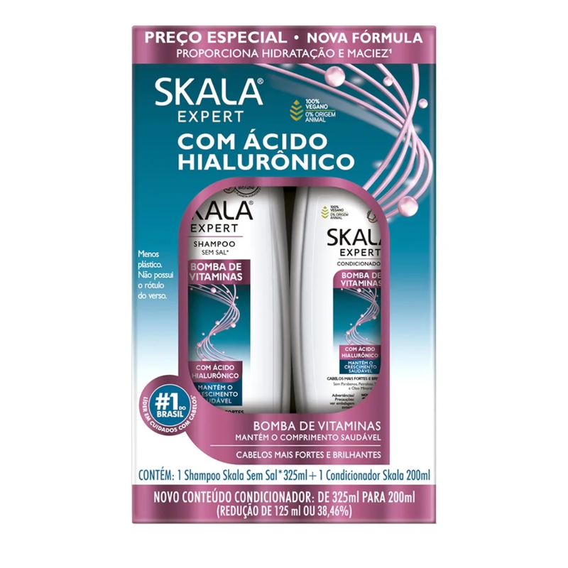 A linhaSkala Expert Bomba de Vitaminas, possui uma fórmula exclusiva com ingredientes ricos em nutrientes poderosos, que auxiliam na saúde dos fios.
